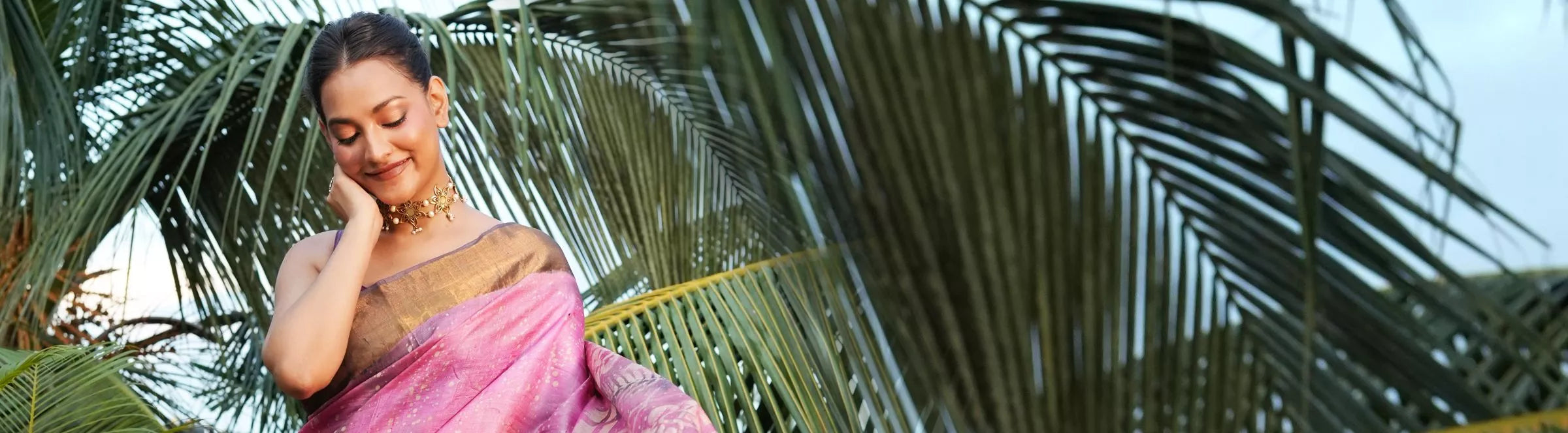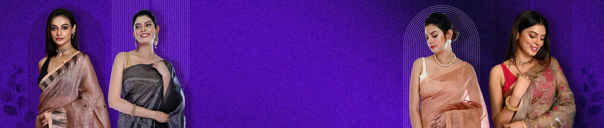 Our latest saree collection features a range of sarees made from versatile fabrics such as Matka, Linen, Tussar, Silk Linen, and Muslin. Each of these fabrics speaks of comfort – ensuring you get a product that delights you and adds value to your wardrobe.