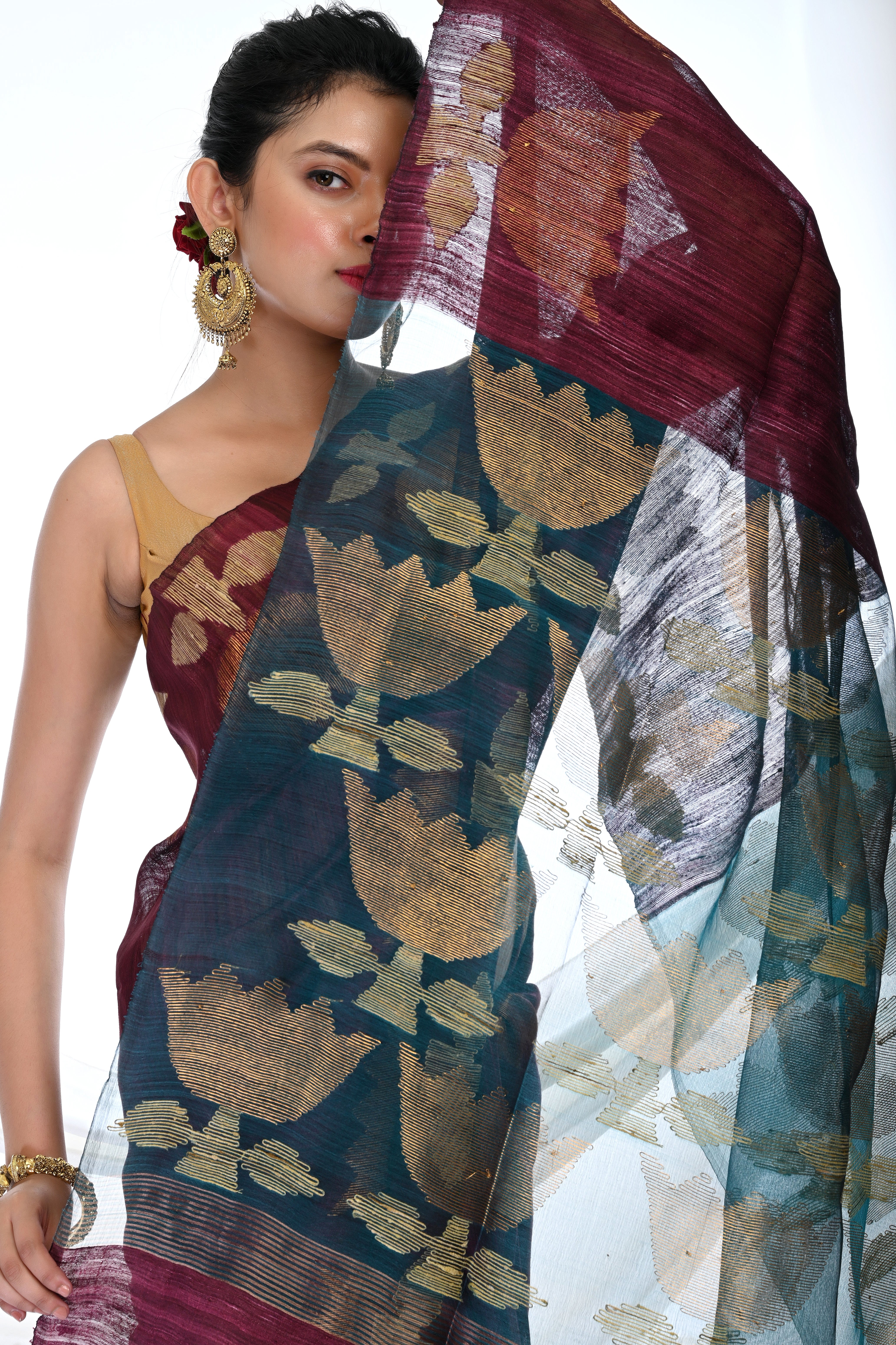 Design: Traditional Jamdani weaving on both borders