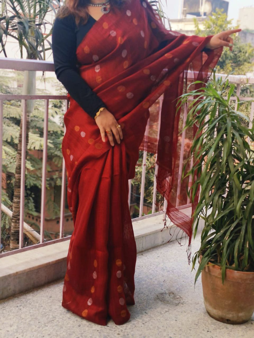 Bangal Handloom Saree – Pure Matka Silk with Ball Jamdani Design