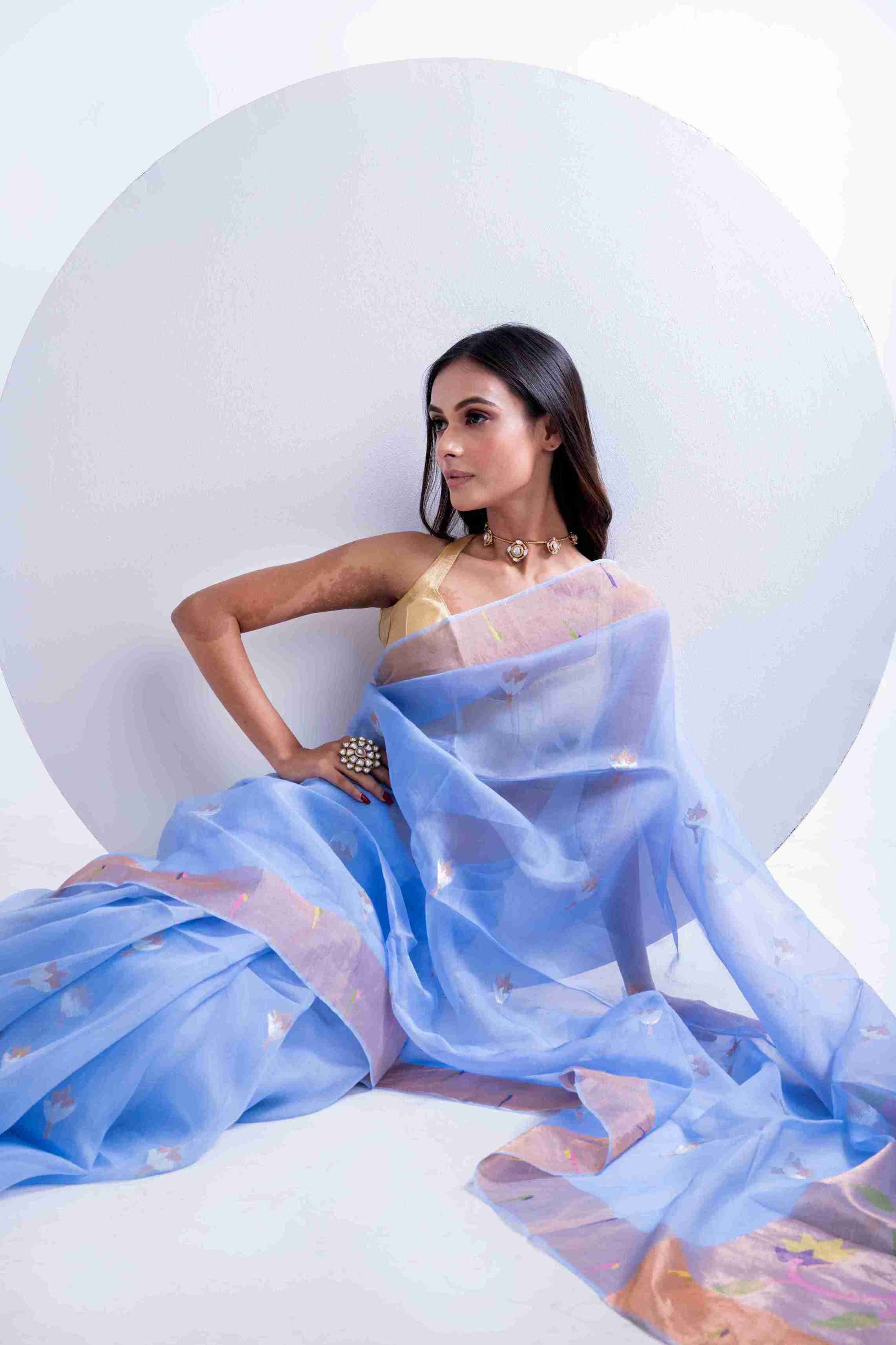 Experience timeless elegance with our Pure Muslin Paithani Saree, beautifully adorned with Jamdani weaving and a classic Hockystick-style Paithani border. Crafted with precision, this saree blends traditional artistry with premium comfort.