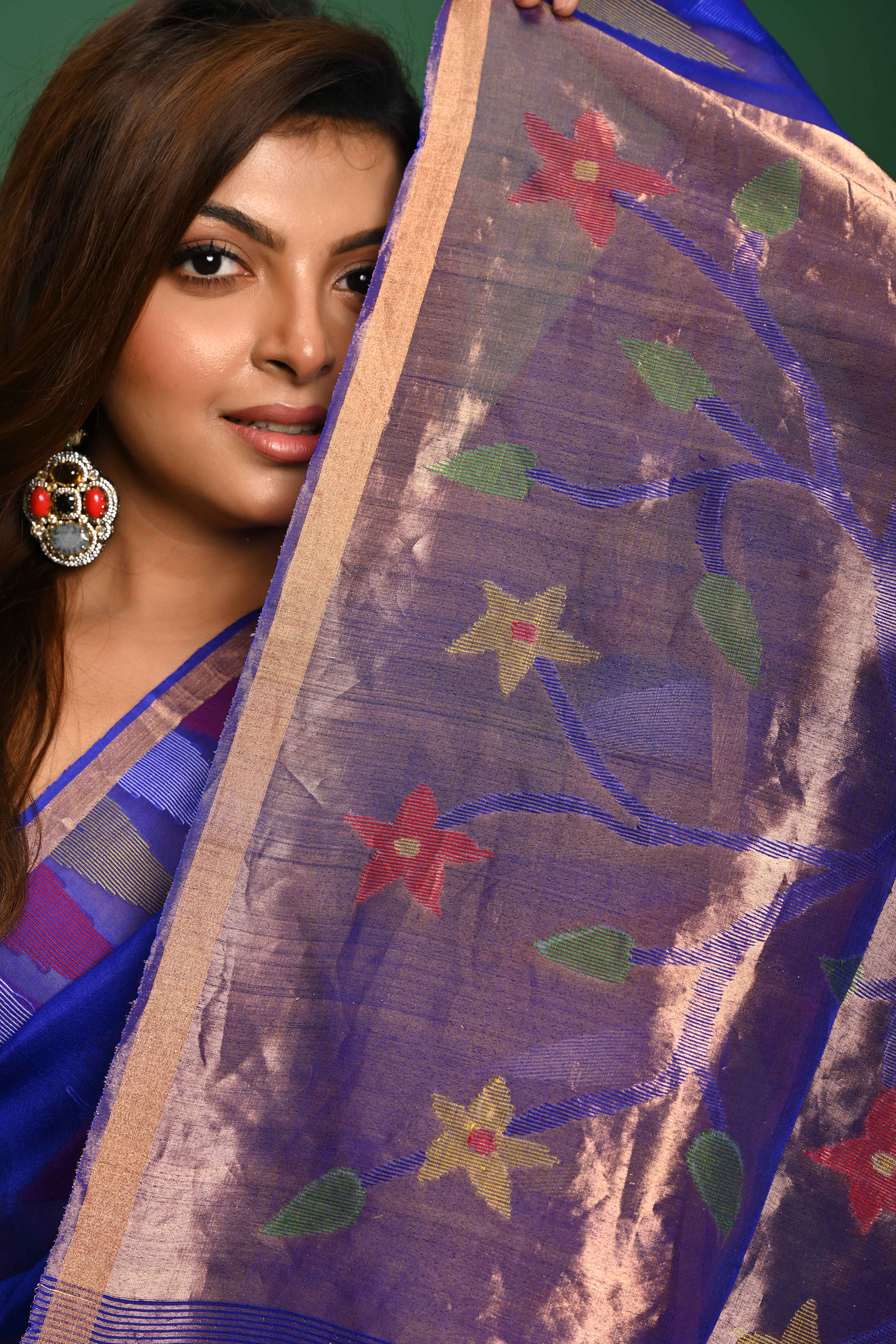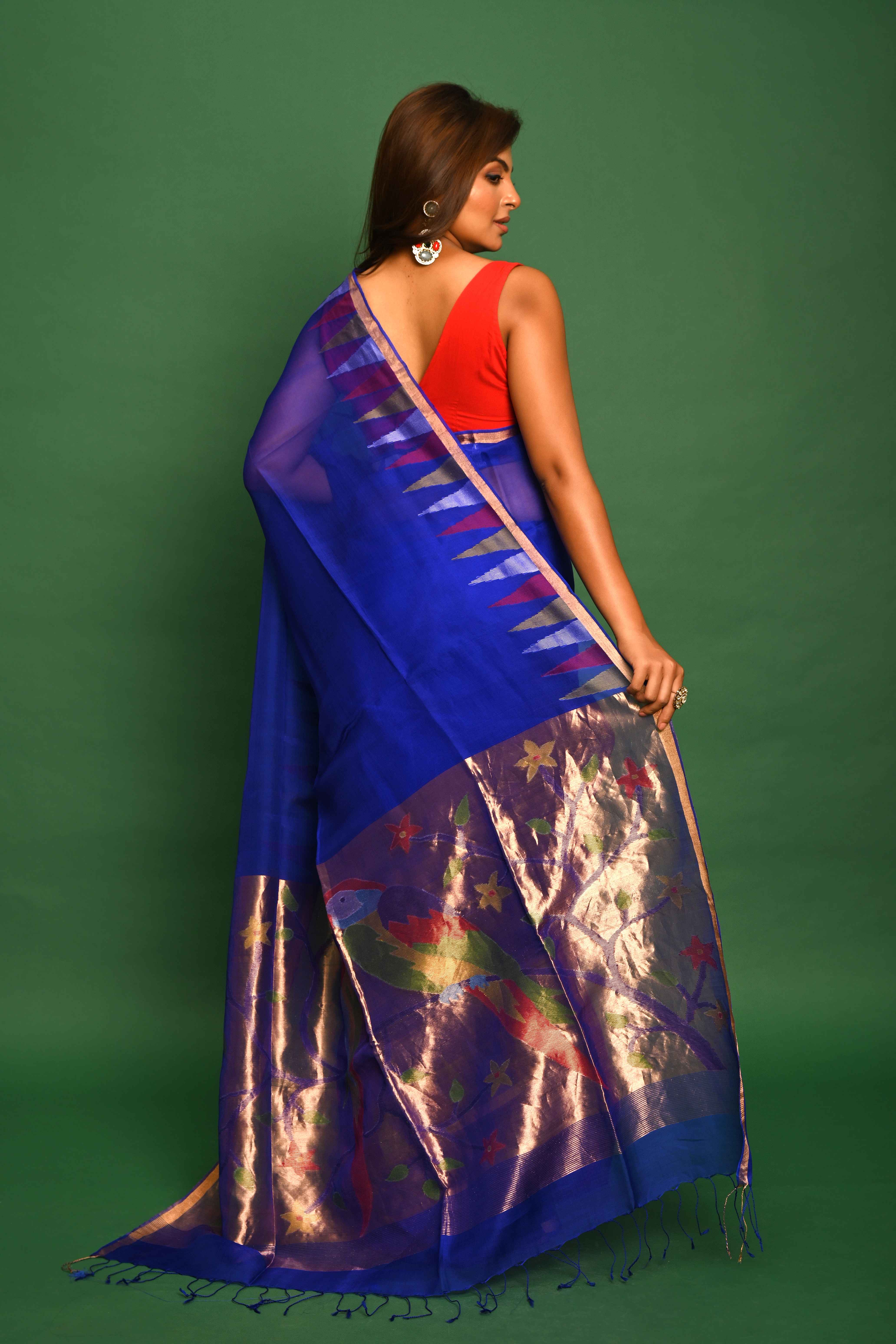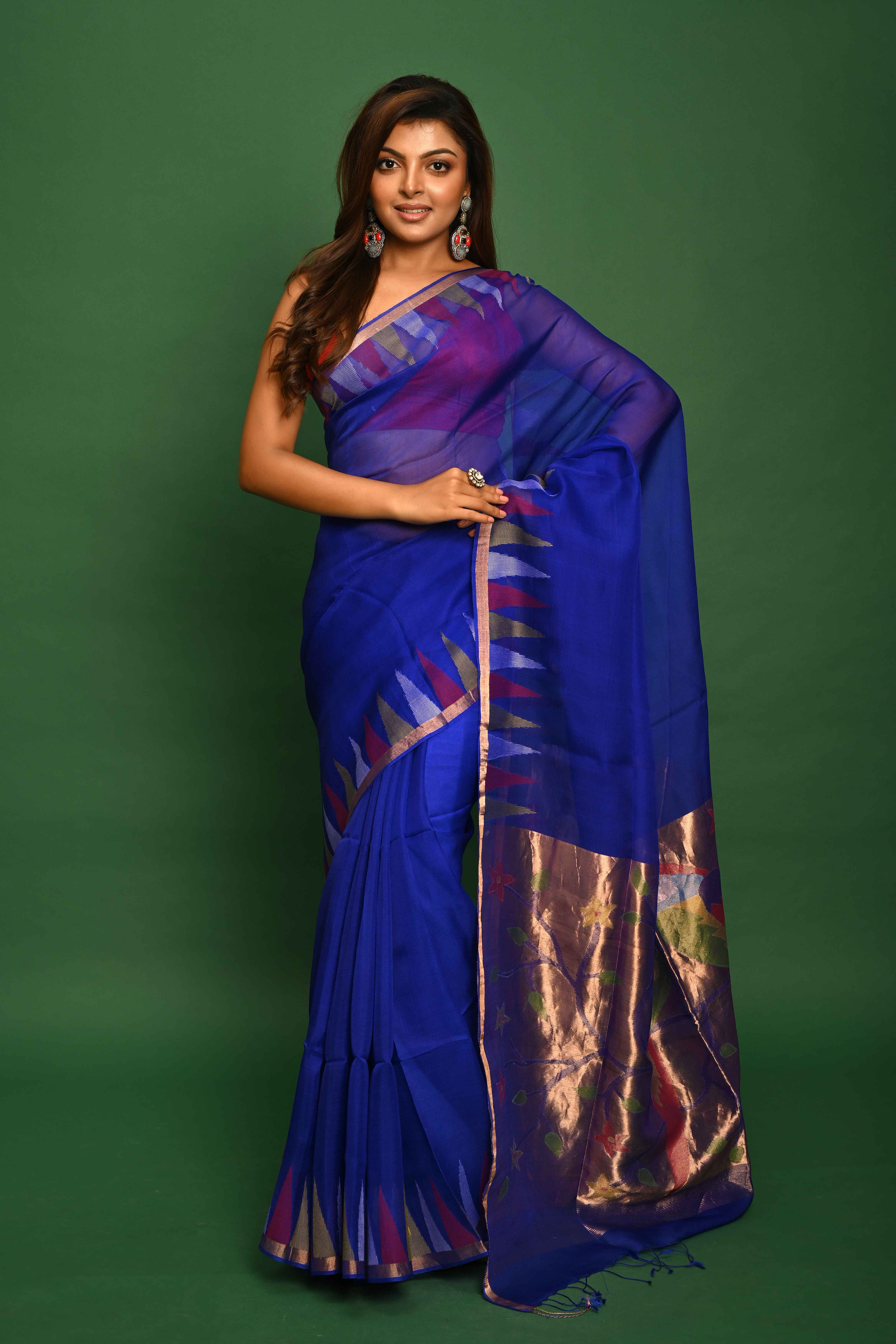 Product Name: Pure Muslin Temple Paithani Jamdani Saree with Blouse Piece